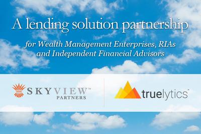 Truelytics Announce SkyView as Exclusive Lending Solution for Wealth Management Enterprises, RIAs and Independent Financial Advisors